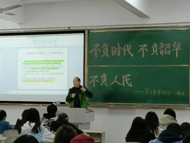 为深入学习贯彻习近平总书记“七一”重要讲话精神,由思政教研室牵头,思政先锋社邀请原南京邮电大学马克思主义学院关工委副主任崇庆余教授来我校开办“学习习近平总书记七一重要讲话”专题讲座。讲座由思政教研室主任吉玥老师主持,全校学生踊跃报名,百余位师生积极参加。
